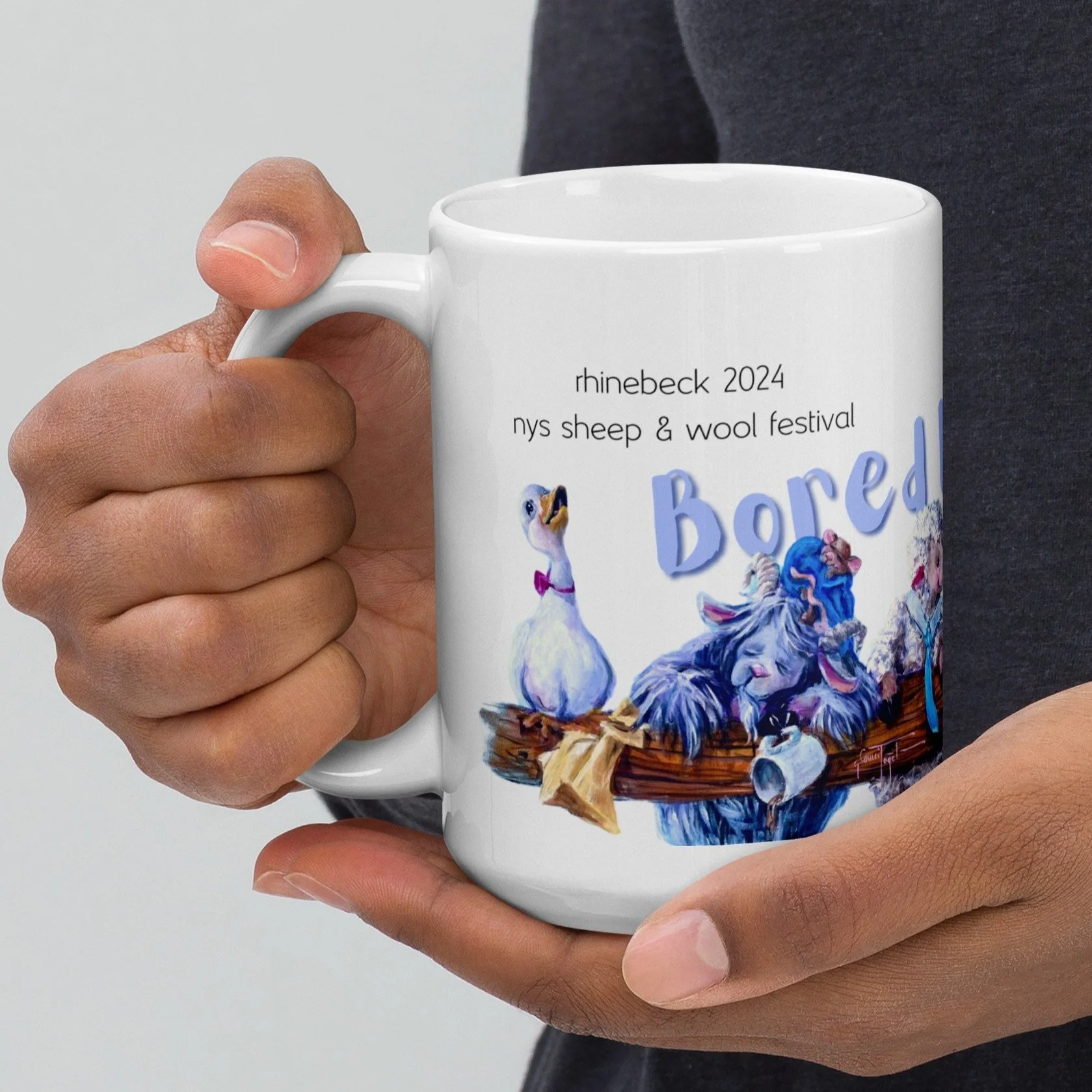 This year we have the collector’s mug “Bored Meeting” available on pre-order/ direct shipping on the website (in previous years we brought stacks of them along - oh, SO much schlepping for everybody involved…this simplifies things for sure) . It will ship directly from our printing partner to your home - so you can meet it when you get back from the festival. It’s the perfect accessory to sip your tea from, while unpacking all your stash haul from the festival.